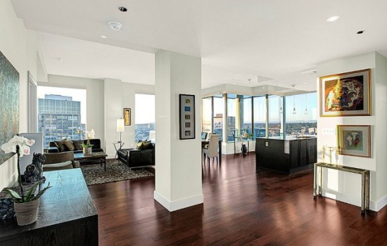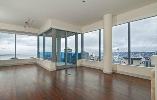 Homes range from spacious one- and two-bedroom residences to three-bedroom penthouses. Interiors feature open-concept floorplans, floor-to-ceiling windows, hardwood floors, and contemporary kitchens with high-end appliances. Many units have private balconies with sweeping views of Puget Sound, Lake Union, the Olympic Mountains, or the downtown skyline.