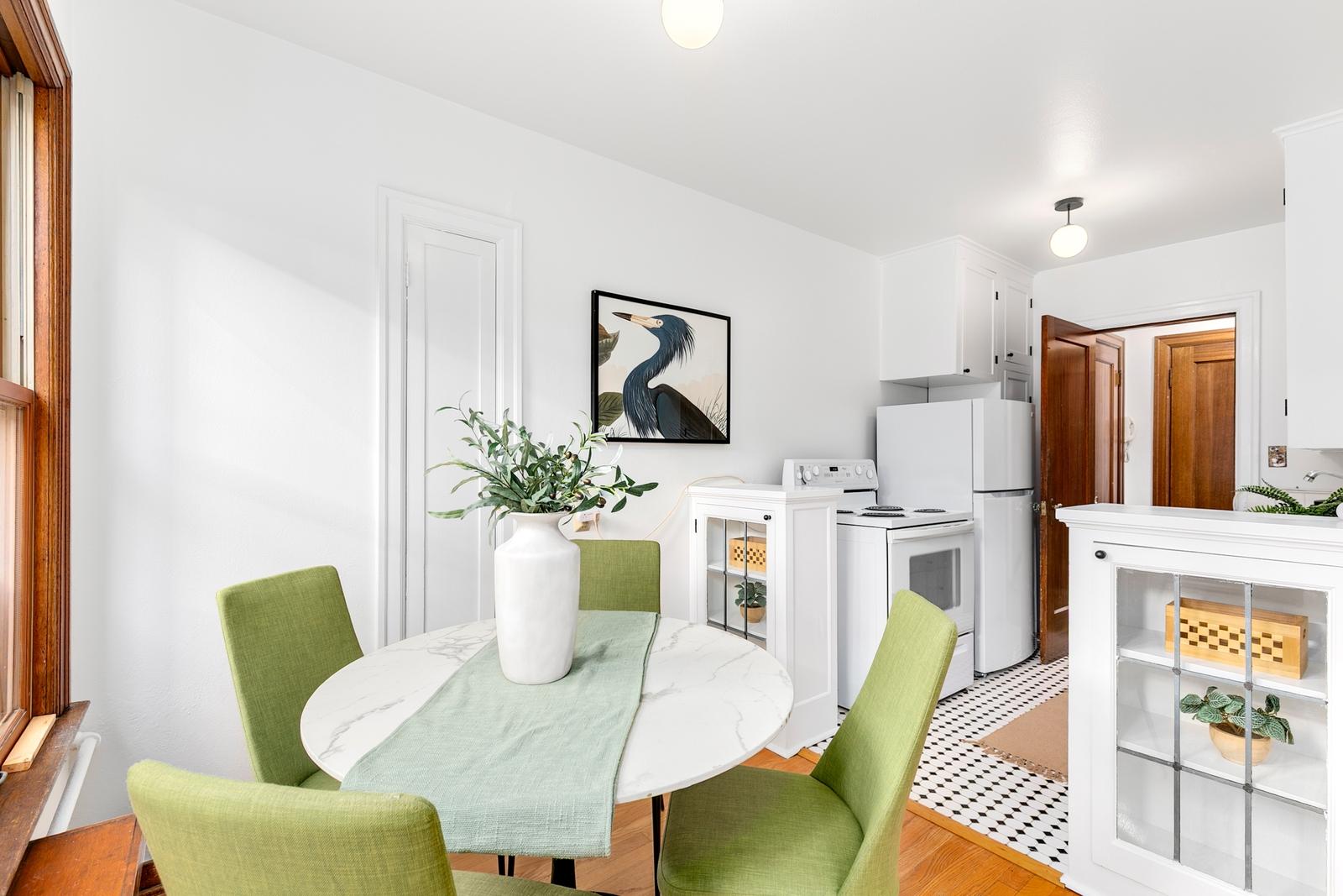 Sophisticated 1-bedroom co-op in Queen Anne’s heart! Beautifully updated with rich mahogany details, modern kitchen & bath. Join a welcoming, well-managed community with shared laundry, bike storage & extra space. Bus stops at your door! Walk Score 93 – 5 blocks to waterfront, minutes to Seattle Center, Kinnear & Kerry Parks. HOA includes water, sewer, garbage, heat & property taxes. Private, quiet living with urban convenience!