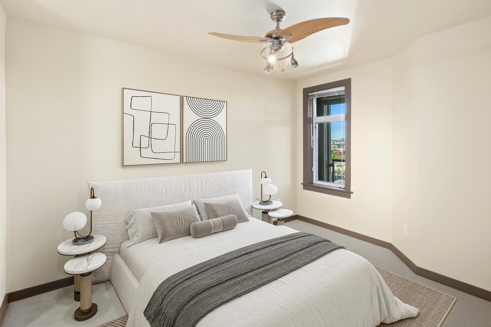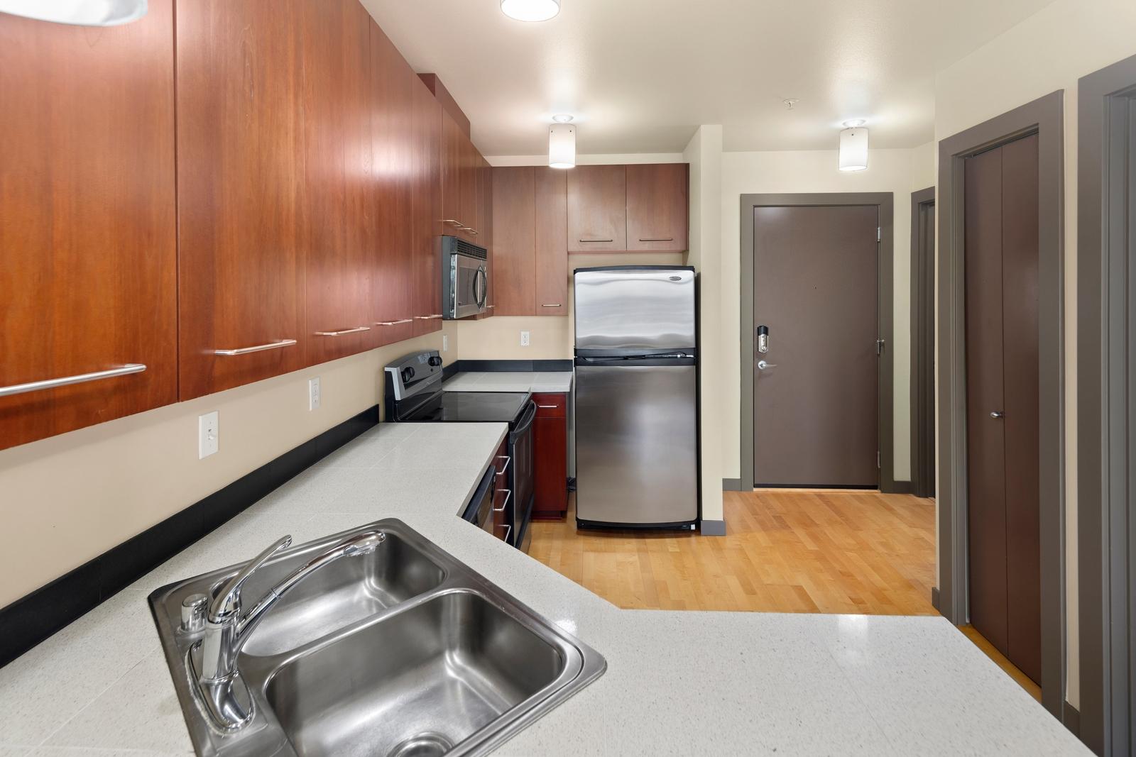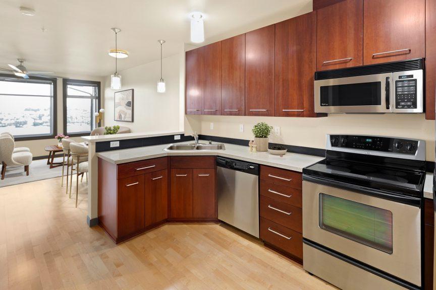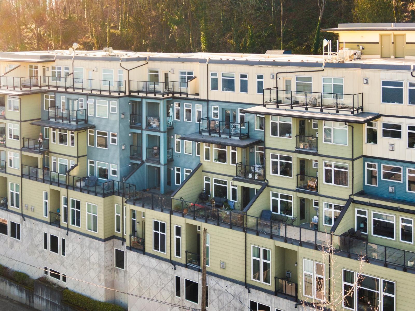 This is it! Lake views in a walker’s paradise. Enjoy views of the water from every room in this one-bed, one bath condo with great space for everything. A spacious kitchen greets you upon entry and then flow into the living room to cozy up to the gas-fireplace while you watch the float planes take off. In summer, step onto your private deck to take in the sail boats. A large bedroom with multiple closets makes this a perfect sanctuary in the city. Just a 10-15 minute walk from Meta, Google and Amazon or hop the bus or bike lane. Perched high in the secure building, clear days will have unbeatable views of the Cascades and Rainier from the rooftop deck. Dedicated parking spot in a prime location and storage closet just down the hall. With no rental cap, this is also an ideal pied-a-terre or investment property in this well-managed building!