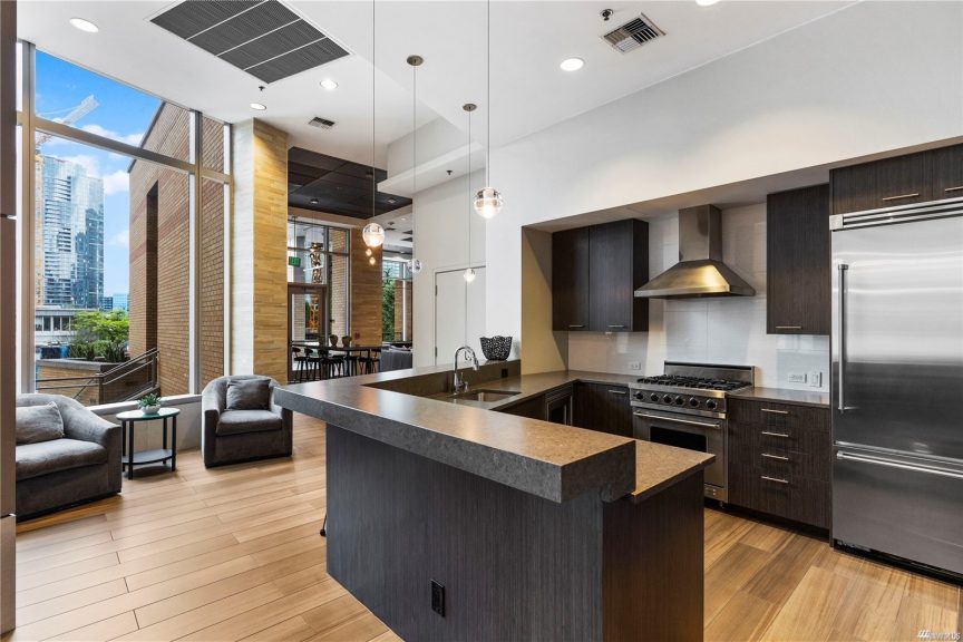 Inside, residences are finished with natural stone, hardwood flooring, open kitchens, and large windows that frame the Bellevue skyline. Many homes have private balconies and layouts that maximize livability. Residents get secure parking, concierge services, and tons of amenities.