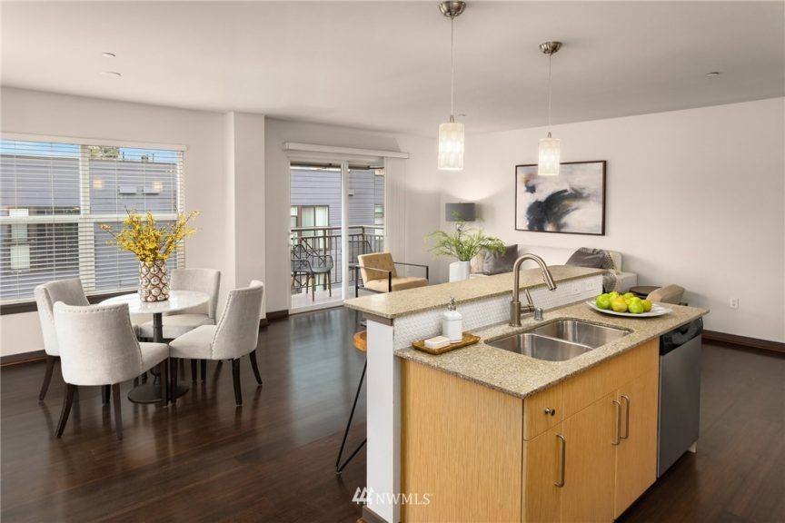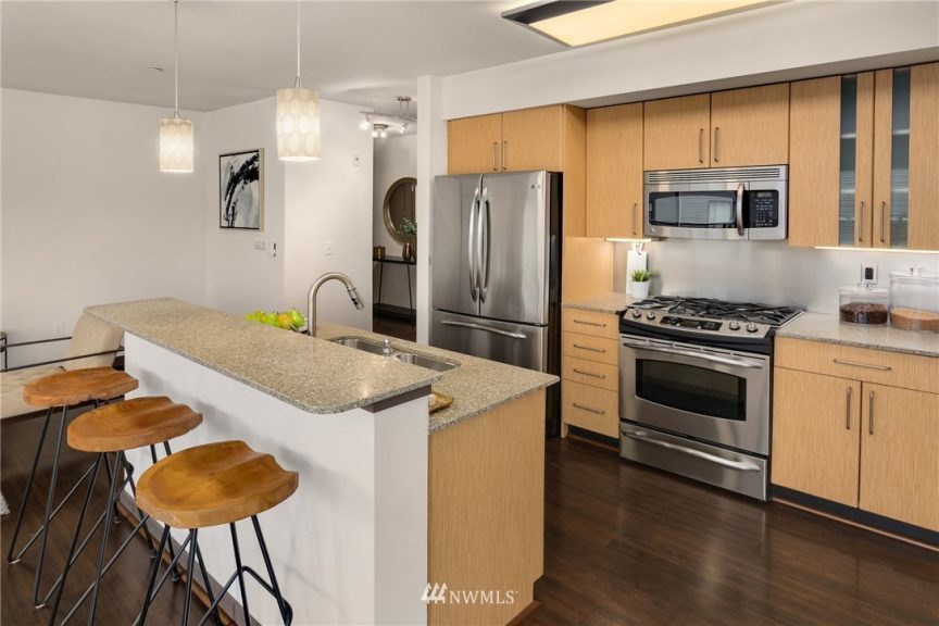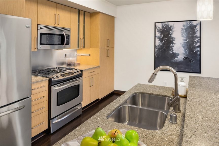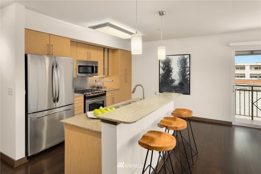 Built in 2007, Florera is a 64-unit condo building in Seattle’s Green Lake neighborhood. Homes in the LEED Silver-certified building feature high-end finishes,  gas range, stainless steel appliances and bamboo cabinets and floors. Units at Florera feature innovative ventilation systems to improve indoor air quality, while high-performance vinyl windows maximize daylight. Community amenities include a sizable rooftop deck with territorial and mountain views (and a p-patch!), a courtyard, clubhouse and secure parking. From Florera, it’s a quick stroll to the Green Lake loop and park space, delicious eateries, and local breweries, cafes, shops and more.