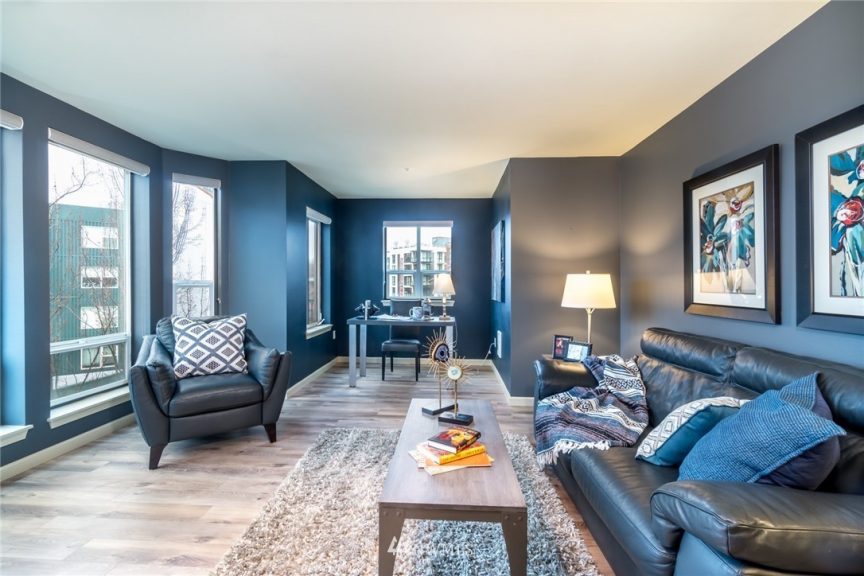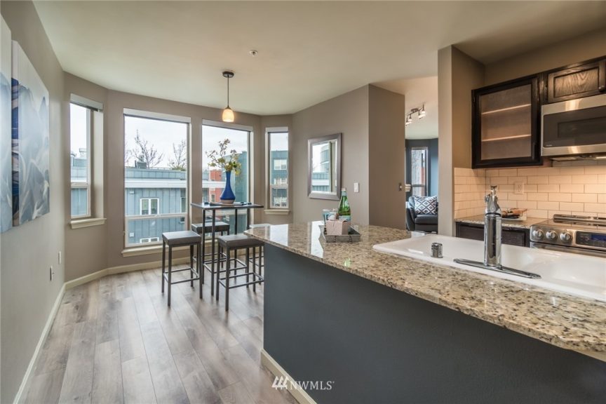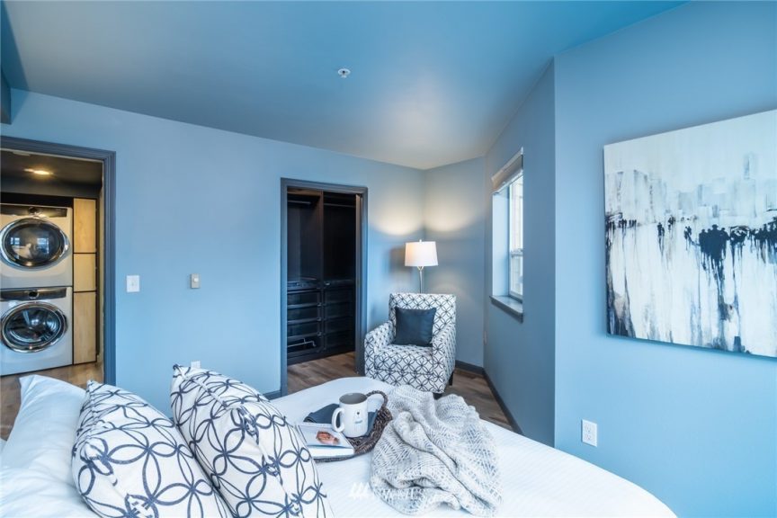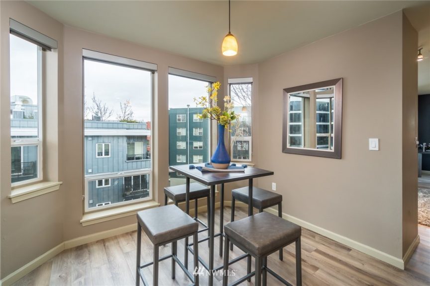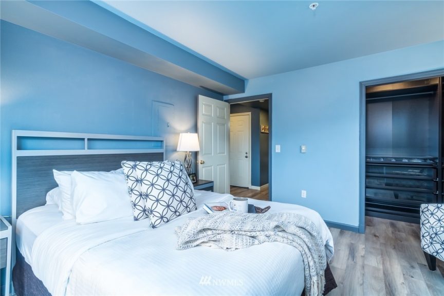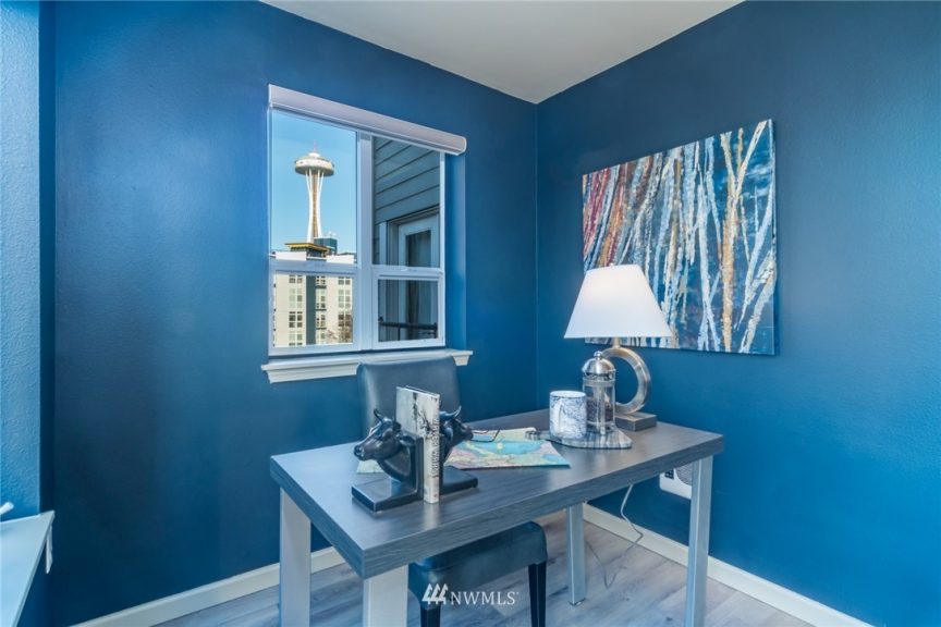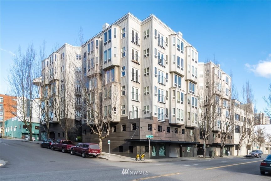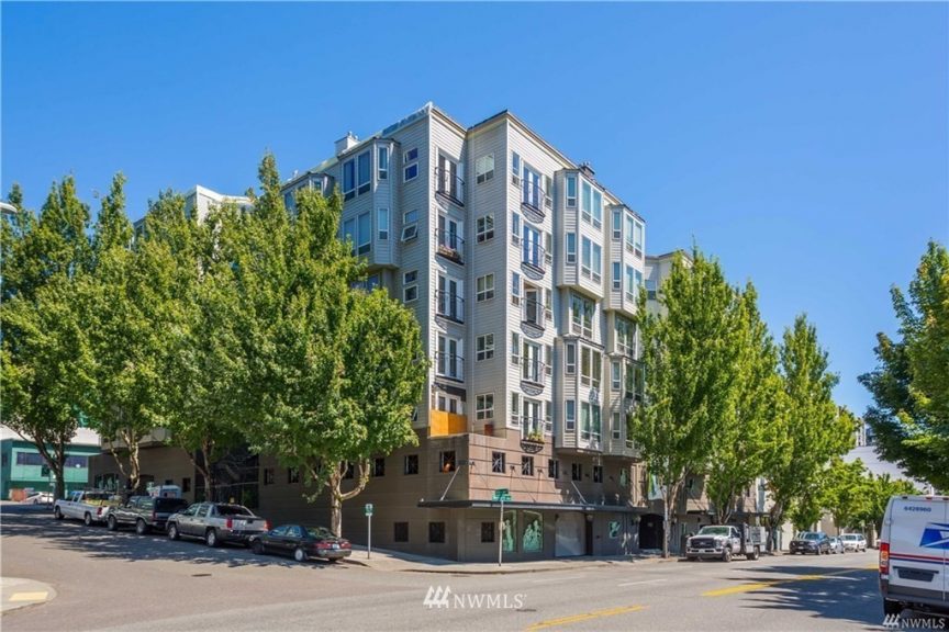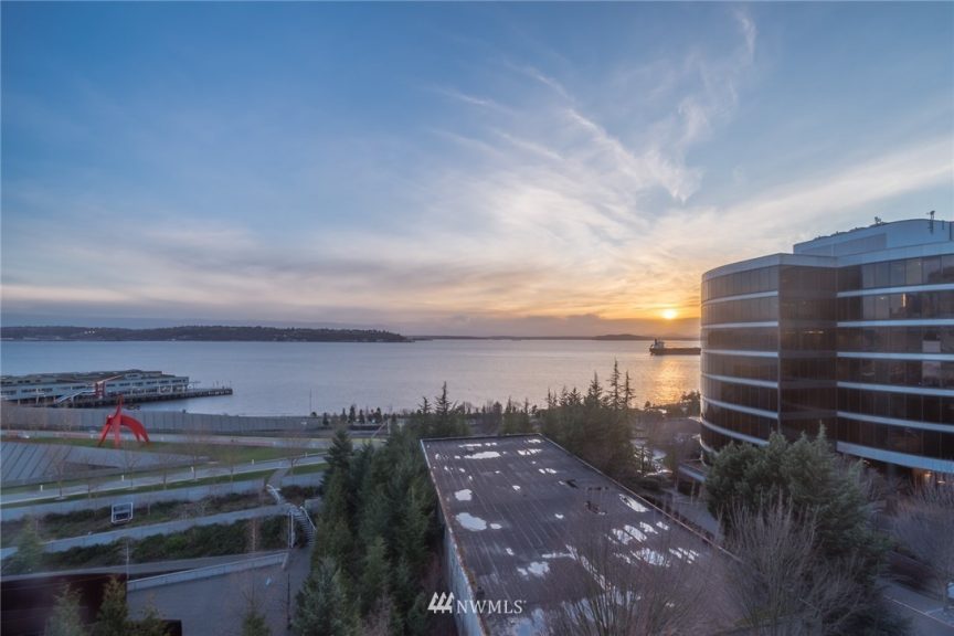 Located in Seattle’s Belltown area near downtown, the Alexandria Condominiums sit alongside Olympic Sculpture Park and Myrtle Edwards Park. Steps from the waterfront and Seattle Center, the building was built in 1991 and features two-bedroom floorplans. Community amenities include a rooftop deck with panoramic views of Puget Sound and the Seattle skyline, as well as a sauna, gym and entertainment room.