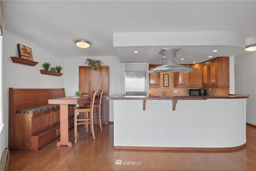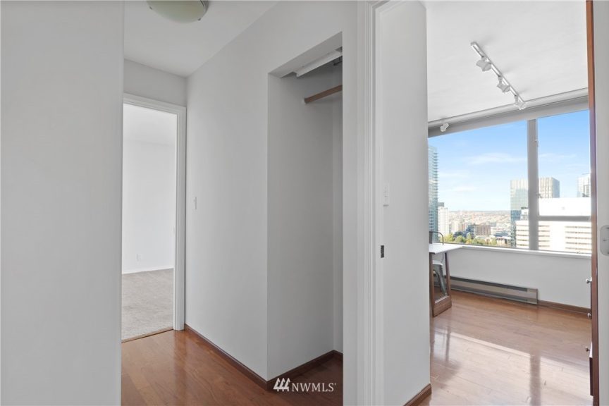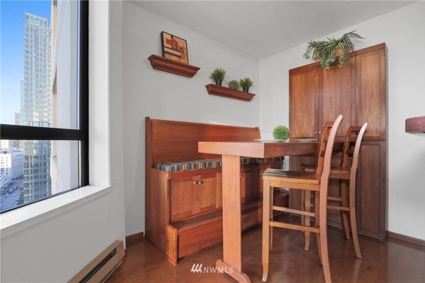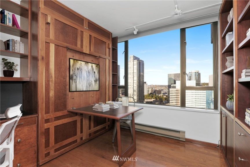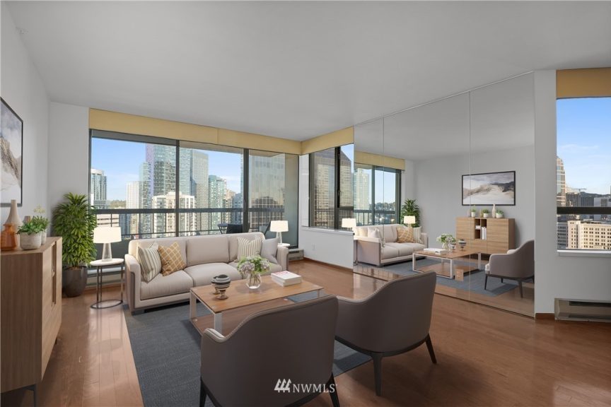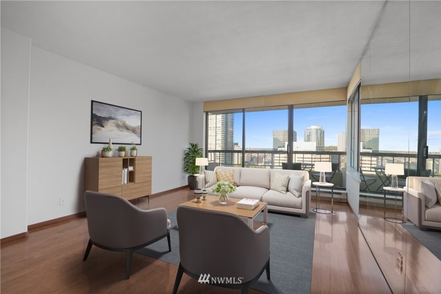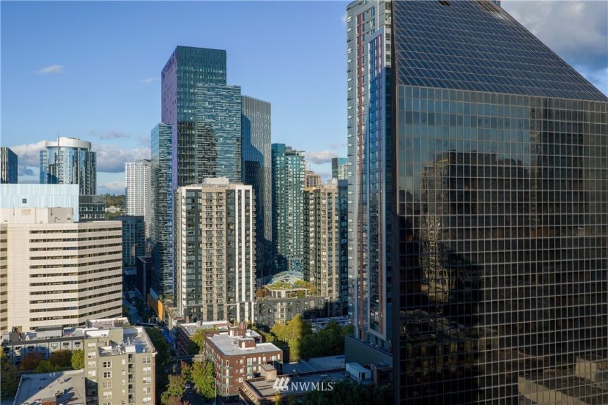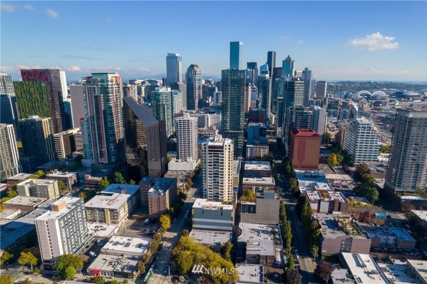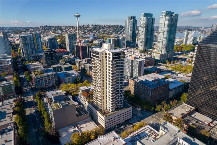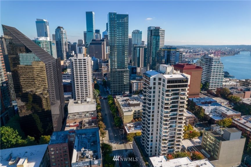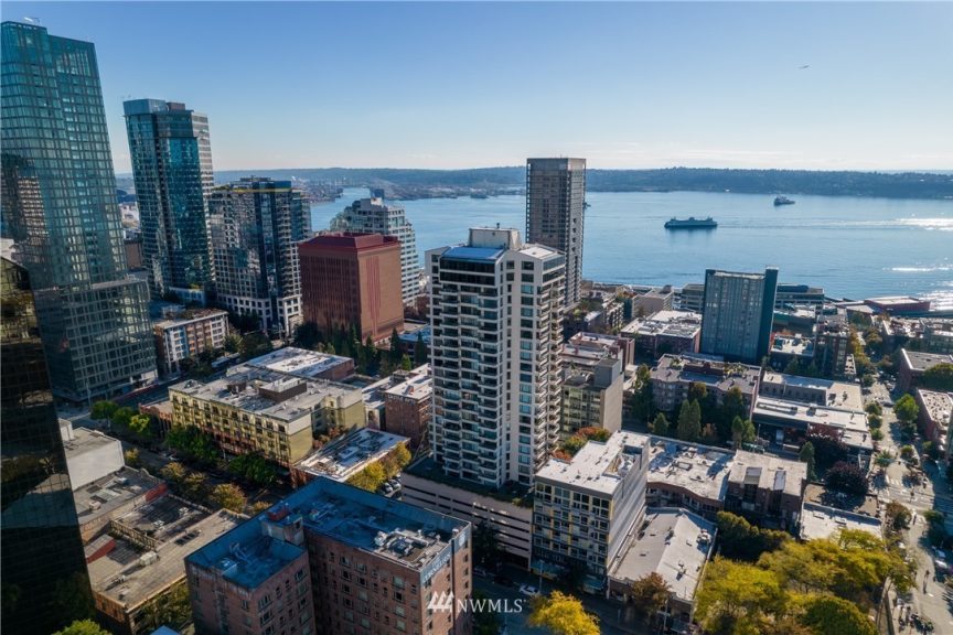 Built in 1979 as an apartment and later converted to condos, the Grandview is a 109-unit condo building in downtown Seattle’s Belltown neighborhood near Seattle Center and the waterfront. A bit older than many of the condo towers in the neighborhood, the Grandview retains its stateliness and homes within the building feature a variety of interior design stylings and finishes as owners have renovated over the years. Residents of the Grandview enjoy amenities like dedicated parking, an indoor pool and hot tub, fitness center, rooftop deck and guest suite. Just steps from the building, and you’re at Olympic Sculpture Park, the Space Needle or Climate Pledge Arena, among other noteworthy highlights nearby.