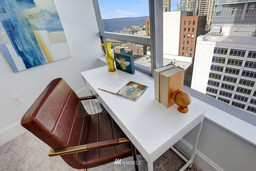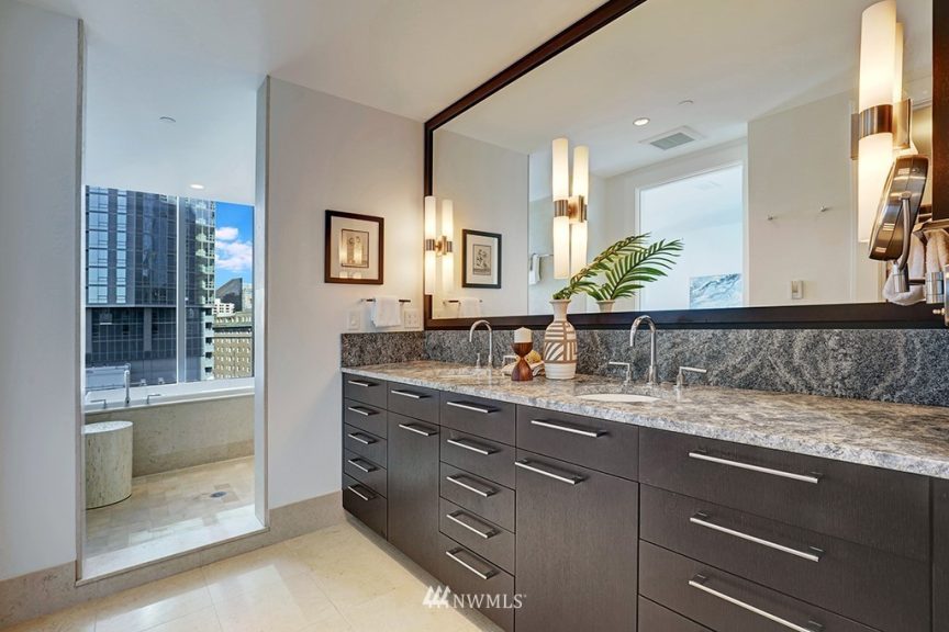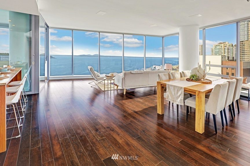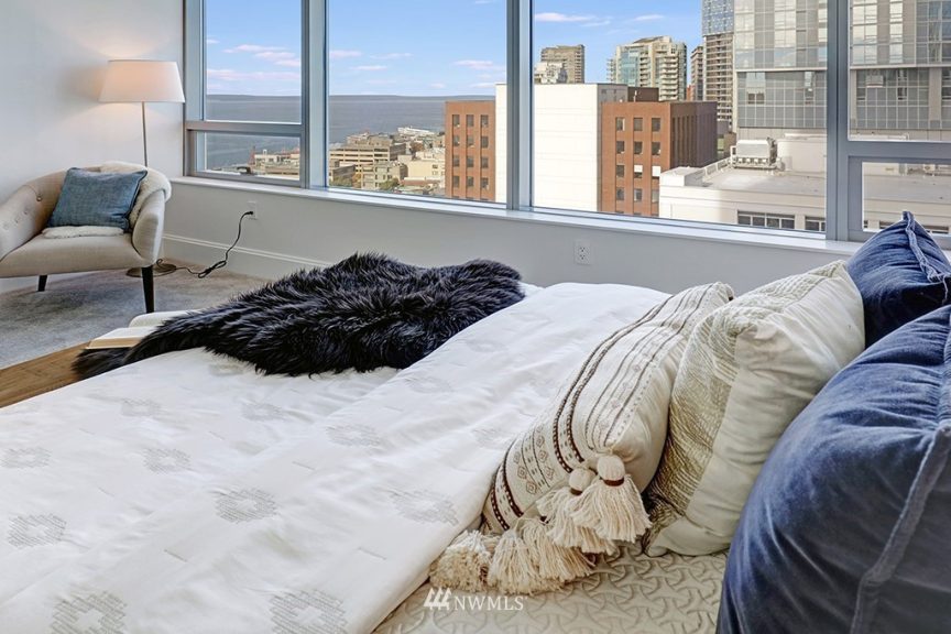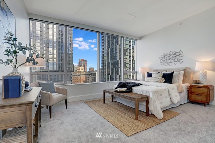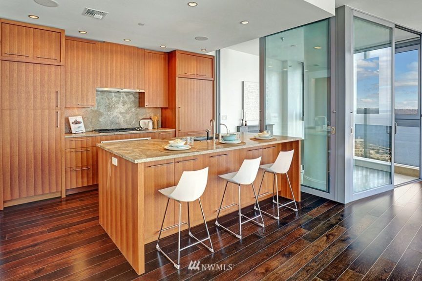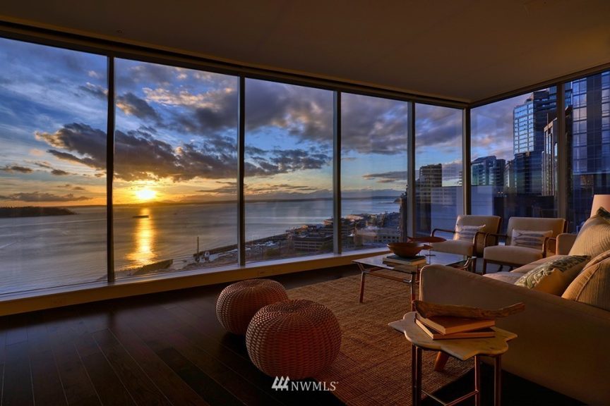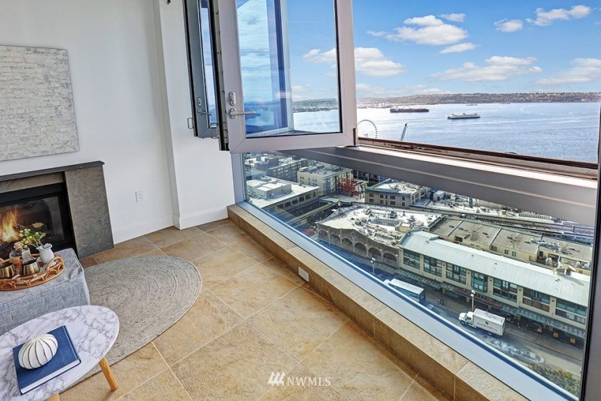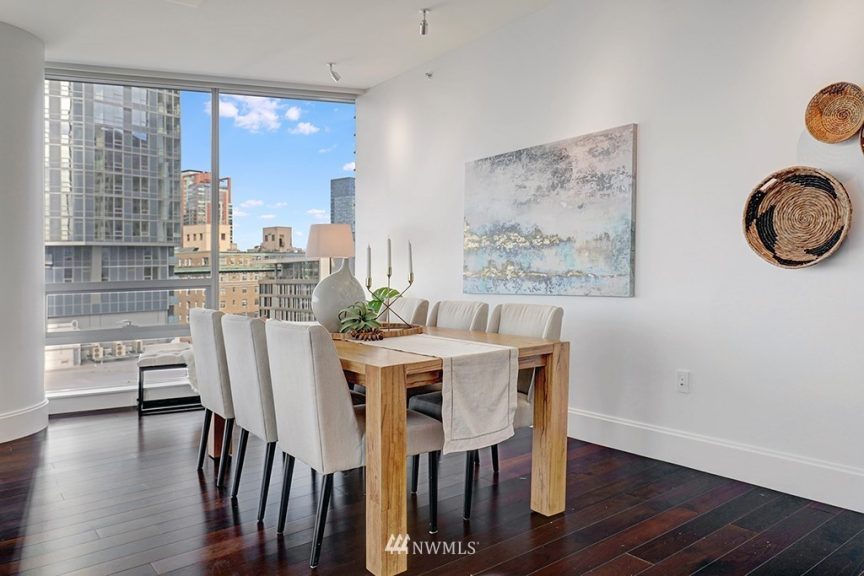 Built in 2008, 1521 is a 39-story, 139-unit high-rise condo in downtown Seattle. Many homes at 1521 offer floor to ceiling windows, modern kitchens, and enclosed decks with gas fireplaces. The two-bedroom properties at 1521 feature expansive views of Pike Place Market, the skyline, Puget Sound and both mountain ranges. The LEED-certified building features community amenities including a 24-hour concierge, conference space, rooftop sky lounge, fitness center, yoga and pilates studio, kids’ playroom, bike storage, a wine room and pet area.