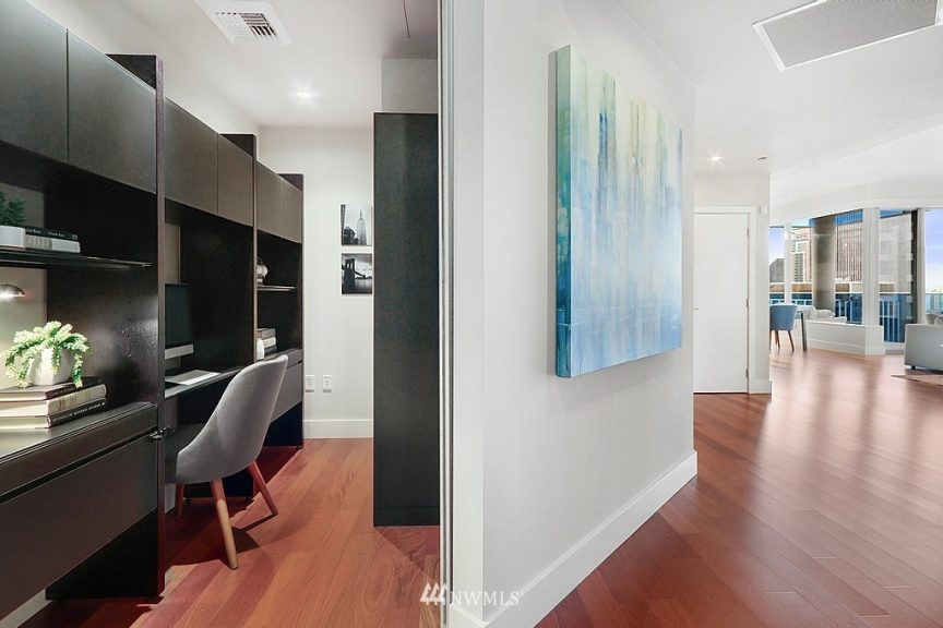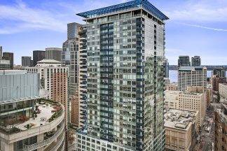 Olive 8 was Seattle’s first LEED Silver-certified high-rise back in 2009, which set a new standard for sustainable, energy-efficient living in the city. The 39-story tower combines a Hyatt Hotel on the lower floors with 229 residential condominiums above. Homeowners have the rare advantage of enjoying hotel-style services alongside private residential amenities.