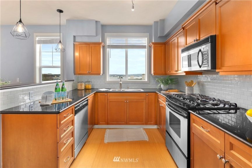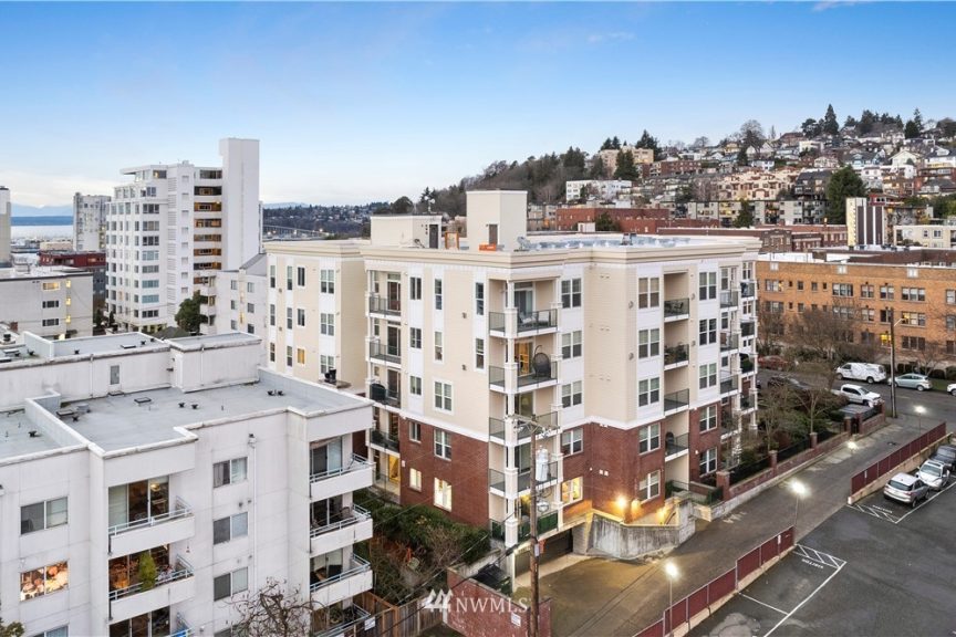 Built in 2003, IV West is a 50-unit condo building in Seattle’s Queen Anne neighborhood near Seattle Center and Olympic Sculpture Park. With Queen Anne and downtown at your fingertips, IV West offers one- and two-bedroom homes feature ample natural light, large bedrooms, secured entry and secured, assigned parking spots. Yes, spots, plural. Units also feature gas ranges and fireplaces, higher-than-average ceilings, decks, in-unit washers and dryers, big closets and additional storage units. Community amenities at the building include a rooftop deck with expansive views and barbeque grills.
