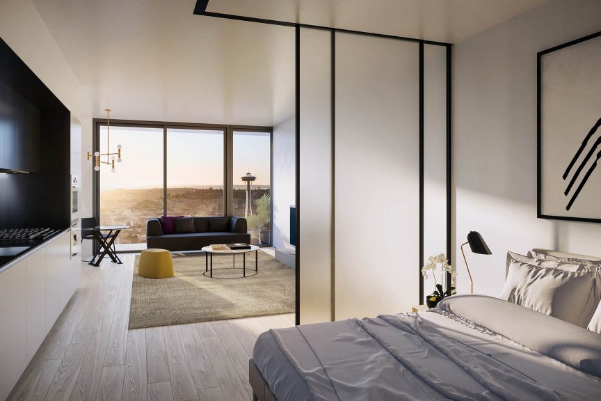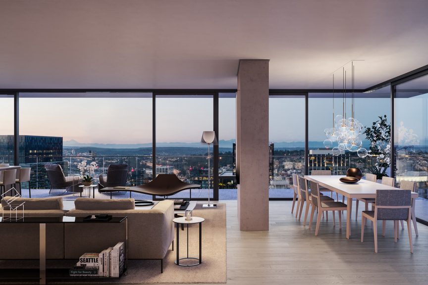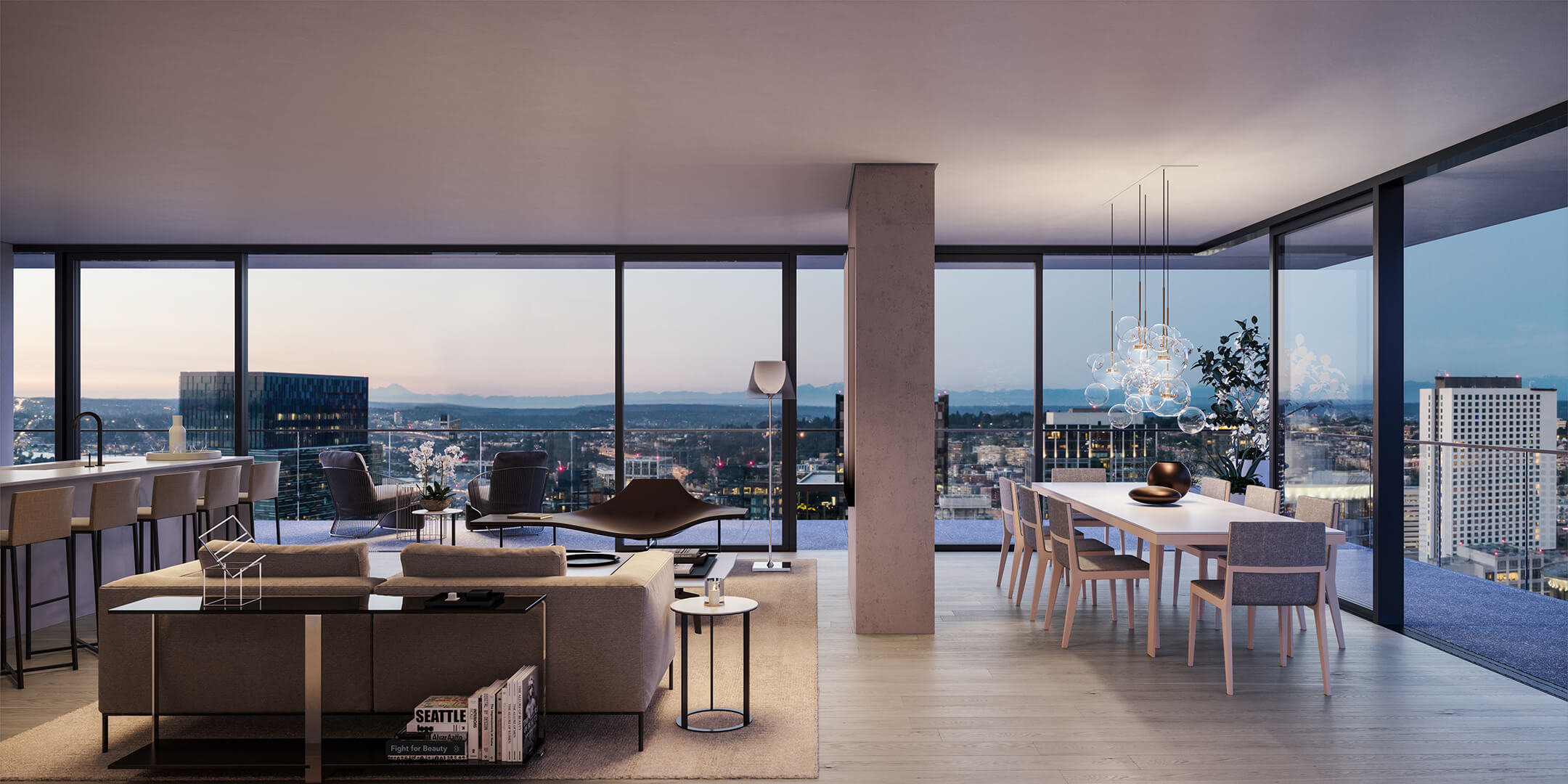 First Light, the new condo tower going up at 3rd and Virginia has just released a whole bunch of renderings and photos of their model building.
