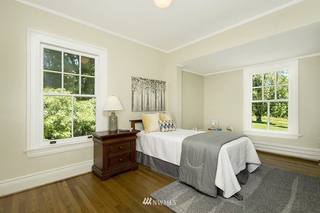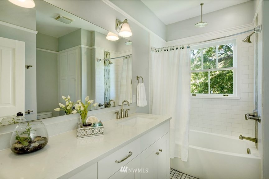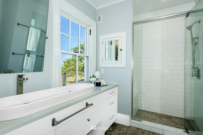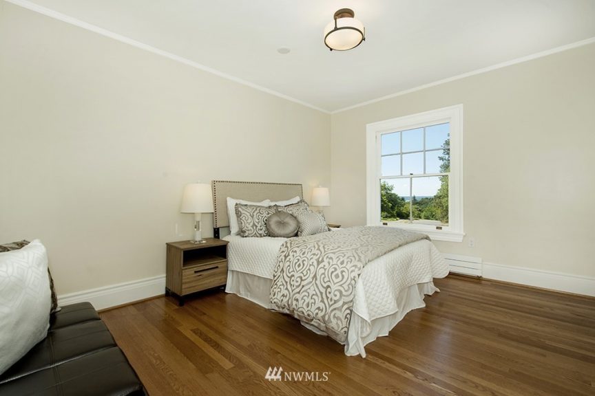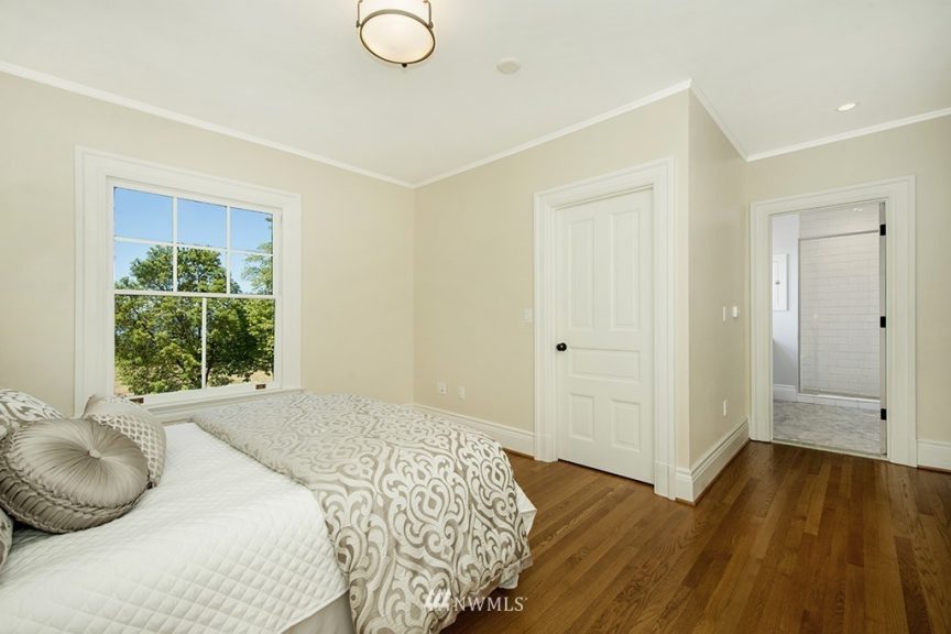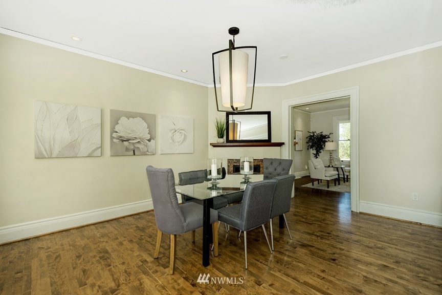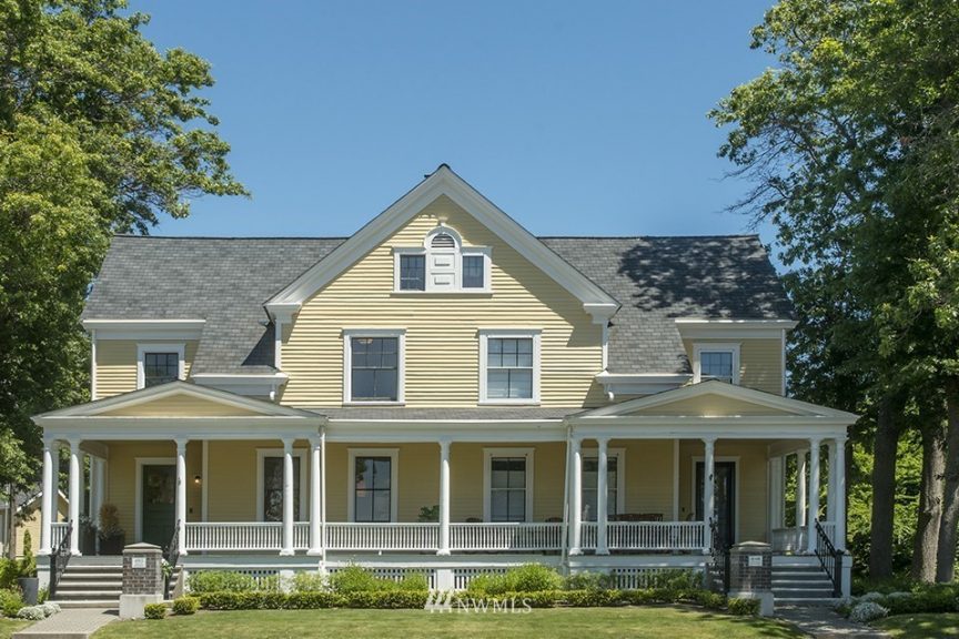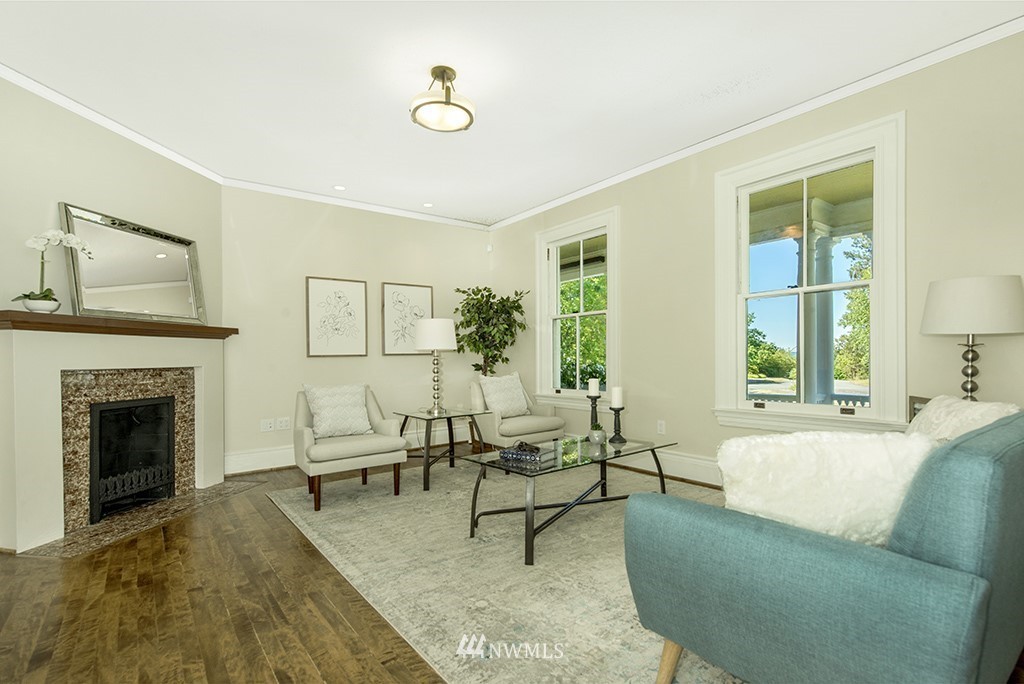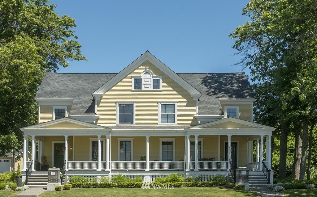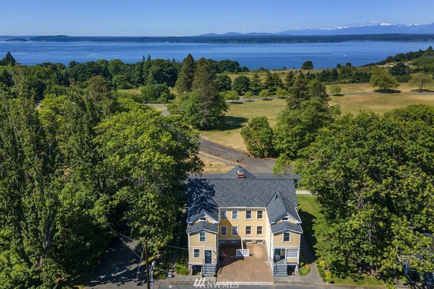 One of five homes on Fort Lawton’s Officer’s Row, 4002 Washington Ave. W was built in 1900 and housed senior military officers until the U.S. Army post closed in 1973. The history-filled Colonial Revival home offers four bedrooms, three-and-a-half bathrooms and unbeatable access to one of Seattle’s most treasured public spaces. Situated alongside the trees and bluffs at Magnolia’s 534-acre Discovery Park, the home was carefully renovated in 2017 to incorporate modern-day conveniences while preserving its historic attributes.