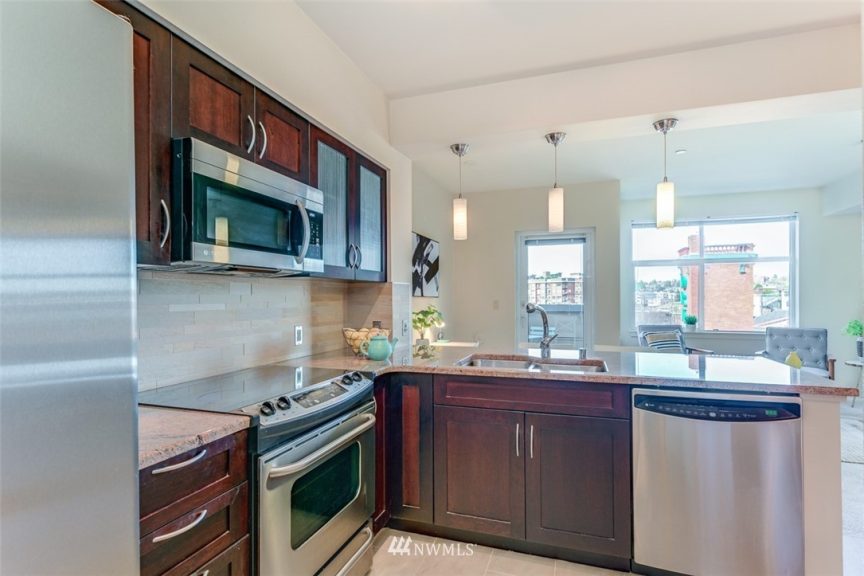 Built in 2007, Canal Station North is a 106-unit condo building in northwest Seattle’s Ballard neighborhood. A unique setup, the property consists of two buildings—but those buildings have separate home owner associations and are managed by different property management companies. They do, however, share a vast list of common amenities, including lounge and conference rooms, a business center, fitness room and dry sauna, hot tub and spa. Some homes at Canal Station North feature views of the ship canal, Olympic Mountains and Mount Rainier, and many offer elevated interior finishes, wood cabinetry, granite counters, cozy gas fireplaces and private decks.