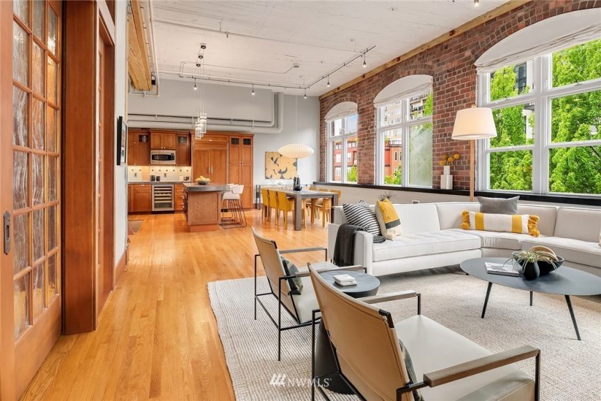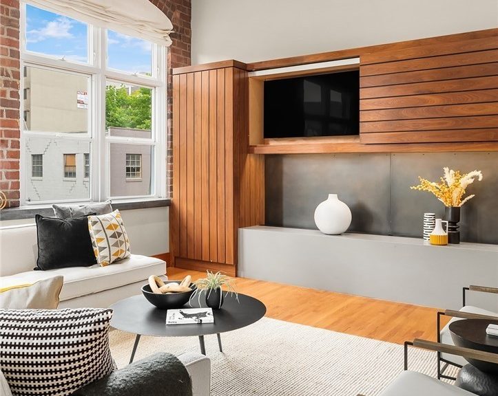 In bustling Belltown a few blocks from Seattle’s historic waterfront, 81 Vine Street is a loft-style condo building situated in one of the city’s most impressive conversions. Built in 1914 as a printing factory, the building’s 24 homes are wonderfully preserved with floor-to-ceiling windows, loft-style bedrooms, a plethora of built-ins and vaulted ceilings. Homes at 81 Vine Street, which were converted to condos in 2000, offer a blend of premium finishes, endearing vintage materials and industrial flair. True to the era, some homes feature old-growth timber beam ceilings, brick walls and arched windows. 81 Vine Street is steps from Myrtle Edwards Park, the Space Needle, Climate Pledge Arena and downtown. The building enjoys a Walk Score of 98 and provides easy access to some of the city’s most notable destinations.
