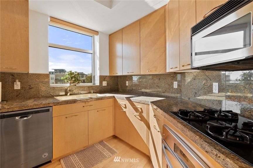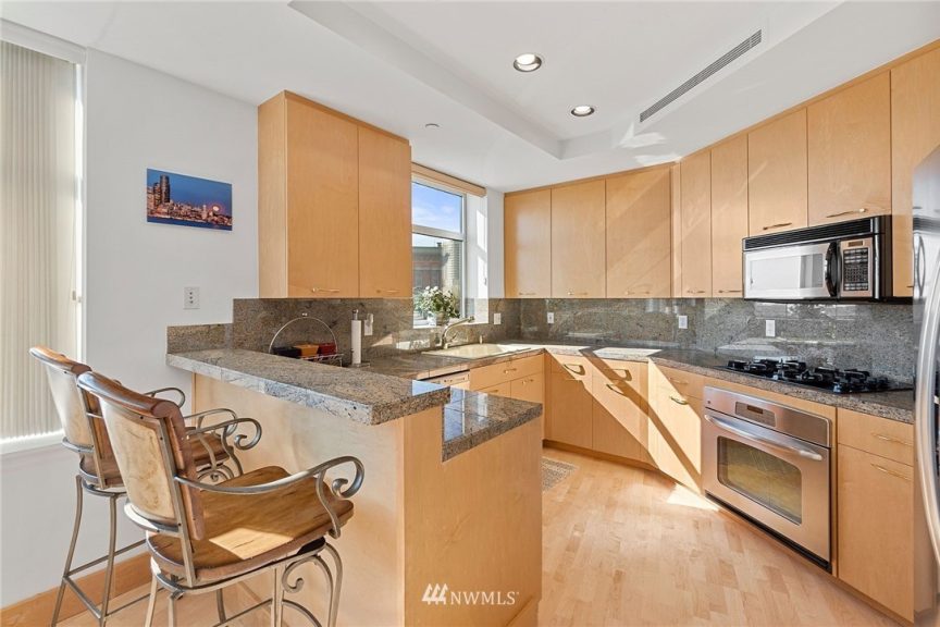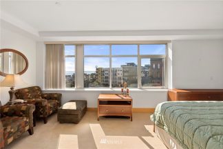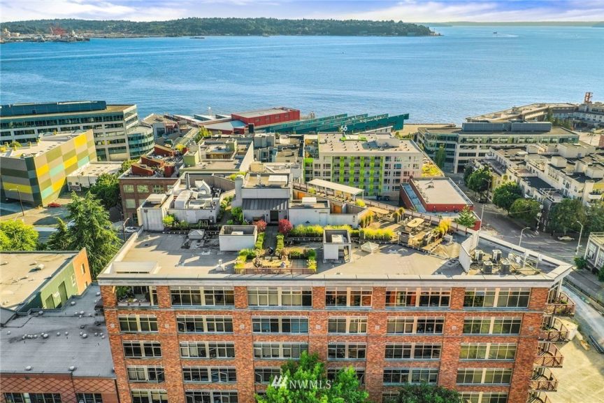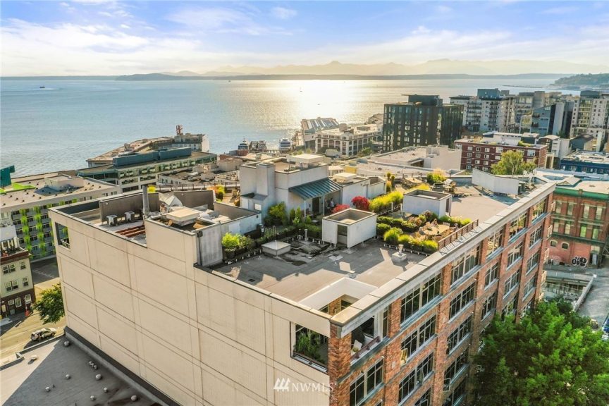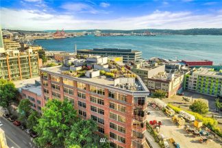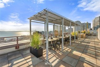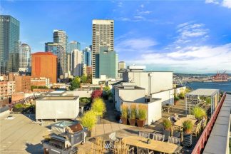 Built in 2000, The Pomeroy is a 54-unit condo building in Seattle’s Belltown neighborhood near bars and restaurants, Myrtle Edwards Park, Pike Place Market and much more. The building’s one and two bedroom homes boast awe-inspiring views, modern updates—like cherry floors and granite counters, plus on-site parking and storage. The unique steel and concrete building’s most noteworthy shared amenity is its incredible, 360-degree view rooftop deck.