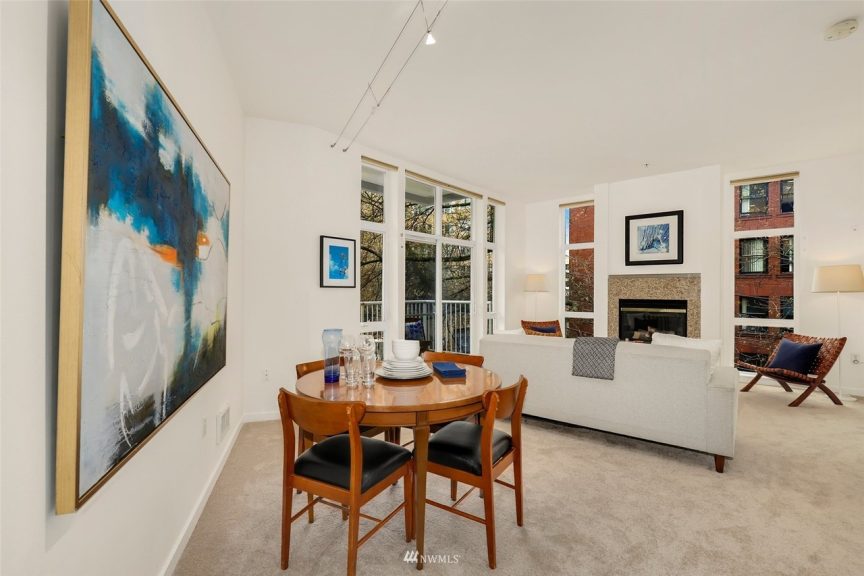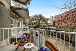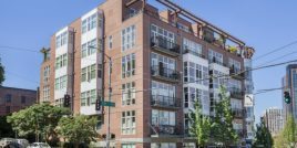 Built in 1998, the Pike Lofts are a 62-unit condo building in Seattle’s Capitol Hill neighborhood in the bustling Pike/Pine corridor. Some of the building’s one- and two-bedroom homes feature 10-foot ceilings and design highlights like slate flooring in the entry and kitchen, soapstone floors and counters in the bathroom, cable lighting, crown moldings and mirrored granite fireplaces. Residences at the Pike Lofts building also feature large windows, slider doors, in-unit washers and dryers and floor-to-ceiling bookcases. Homeowners enjoy access to a small rooftop community deck, and most homes come with a parking space and locked storage unit.