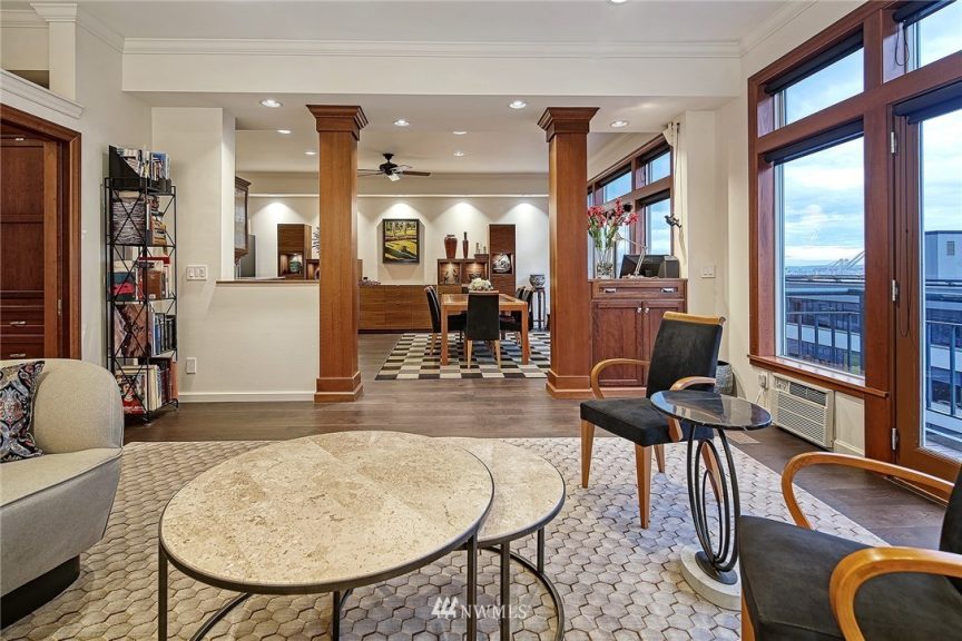 Built in 1989, Market Court is a 64-unit condo building in downtown Seattle. Homes within the mid-rise, wood frame-construction offer contemporary designs and finishes. Bright, open-concept layouts boast oversized windows, private balconies and skyline views. Some units at Market Court offer chef’s kitchens with custom cabinets and stainless steel appliances, while many primary bedrooms feature spacious closets and ensuite bathrooms. All homes feature in-unit washers and dryers, as well as reserved garage parking. Perhaps best of all, Market Court residents live in the heartbeat of downtown, across the street from the iconic Pike Place Market, Seattle’s Central waterfront, Olympic Sculpture Park and so much more.