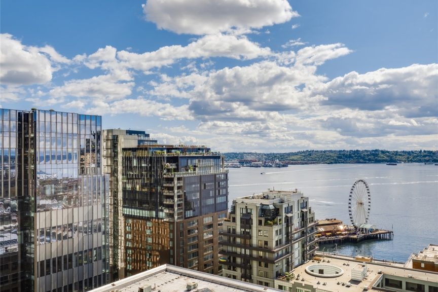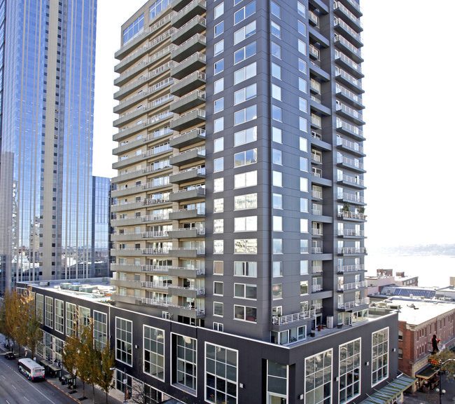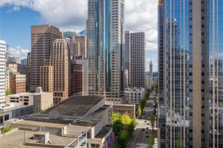 Built in 1991, the Newmark Tower is a 24-story, 192-unit condo tower near Pike Place Market and the Seattle Art Museum in downtown Seattle. The concrete and steel-constructed building was originally built as an apartment building, but was purchased in 1993 by HAL Real Estate Investments and converted to condos. Homes at the Newmark tower feature skyline and water views, modern updates (like oversized and efficient European tilt windows) and deeded and secure parking spot(s). Shared community amenities include 24-hour concierge services, a renovated indoor pool, sauna and hot tub, a rec room, gym and rooftop views with sweeping 180° views of Elliot Bay.