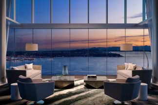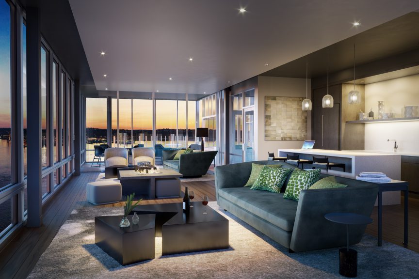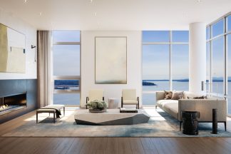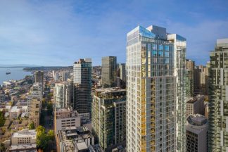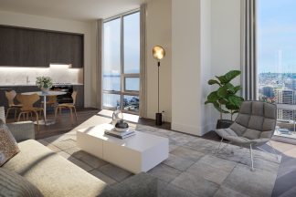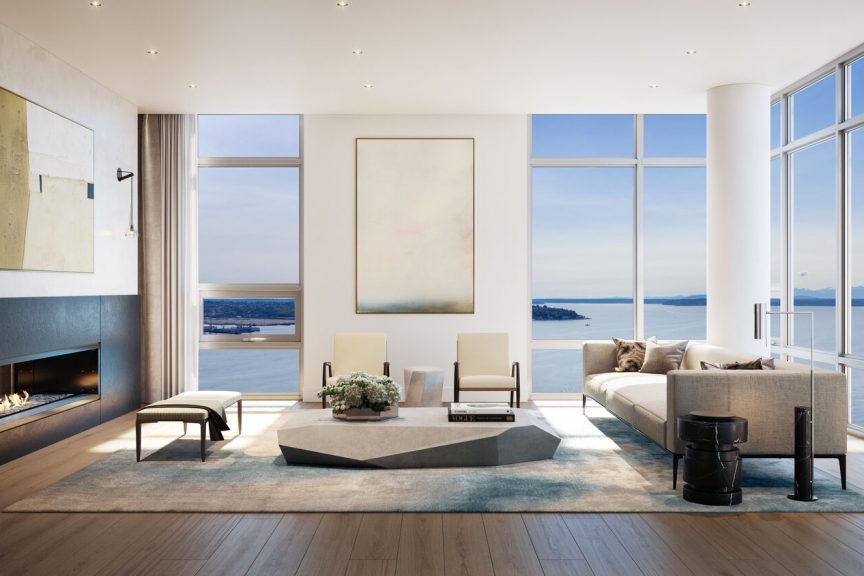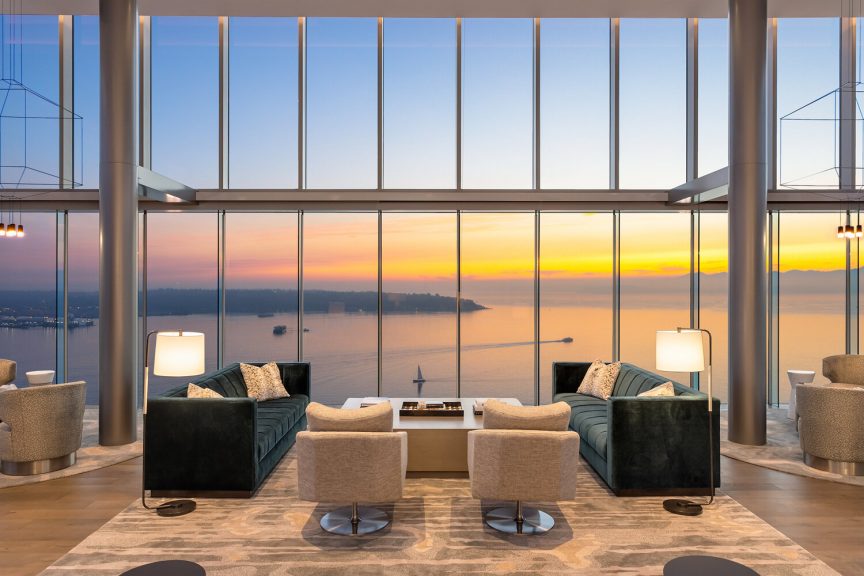 Its glass façade reflects the light of the city and Puget Sound, making it a standout on the downtown skyline. Inside, you’ll find 262 residences, ranging from efficient studios to spacious penthouses over 3,000 square feet.
