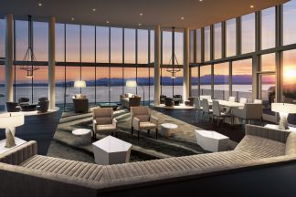 Full-floor Olympic Room indoor/outdoor rooftop lounge