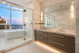 But it’s the total lifestyle that sets this building apart from others in the area. You get hotel-style service and amenities, a full-floor rooftop lounge, pet spa, and Tesla rideshare options.