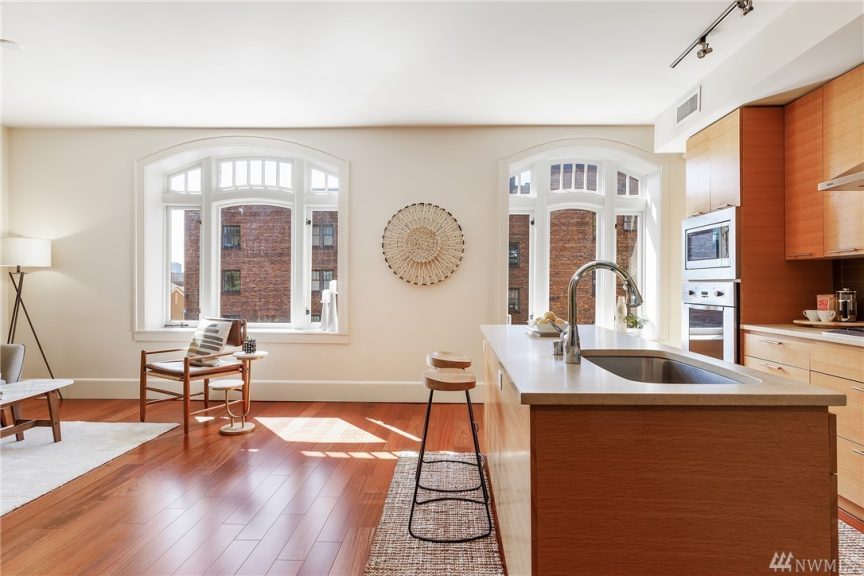 Built in 1909, Leona is an 18-unit condo building in Upper Queen Anne near Kerry Park and Kerry Park Viewpoint, as well as Seattle Center. The historic landmark building was fully updated in 2008 with modern design elements and high-end finishes, including Caesarstone slab countertops and Viking, Bosch and Sub-Zero appliances. Homes at the Leona also features 9-foot ceilings, large closets, stunning hardwood floors and in-unit washers and dryers. Plus, stay cool all summer with central air conditioning, which is rolled into a low HOA fee along with heating, gas and other utilities. From the building, easily walk to Queen Anne shops, restaurants, gyms, transit options and greenspaces—including the iconic Kerry Park—in minutes.