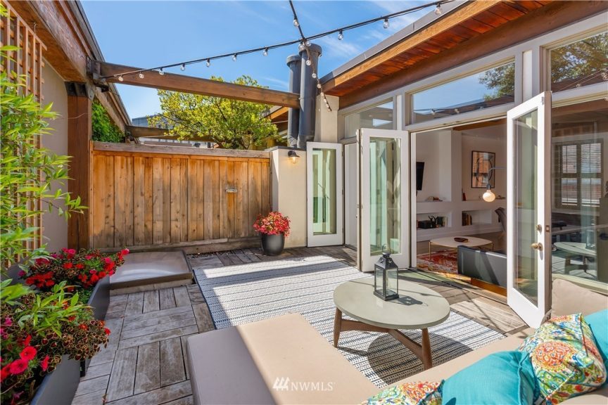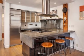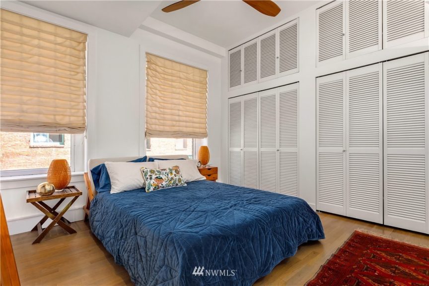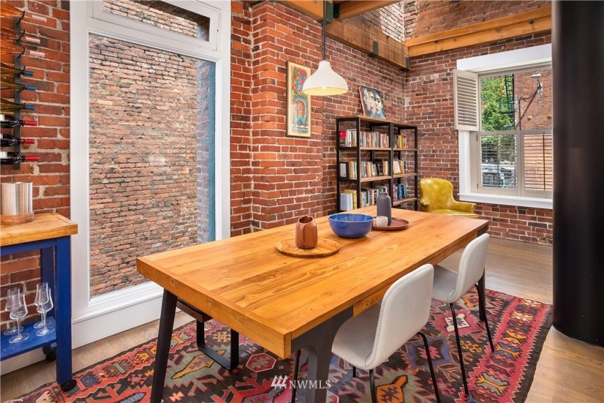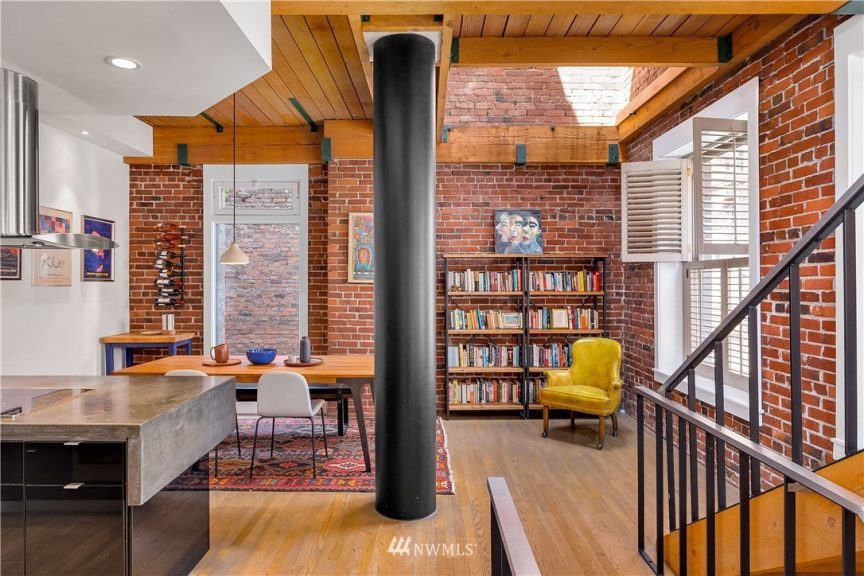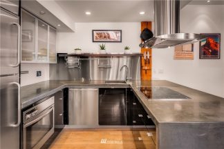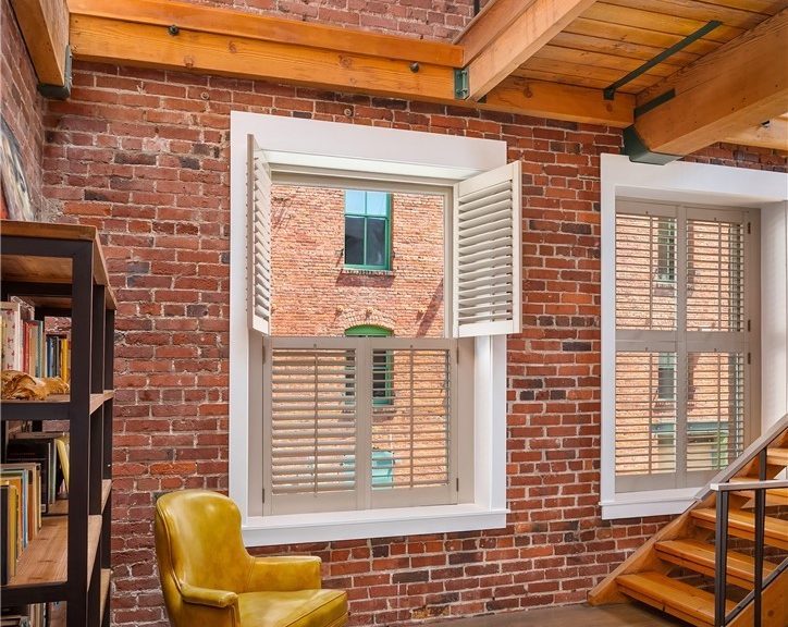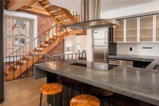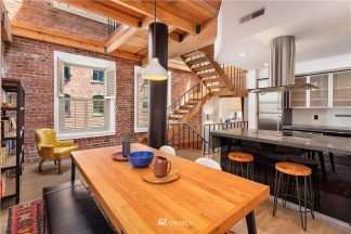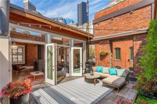 Travelers Hotel is a 7-unit historic loft conversion in Seattle’s Pioneer Square neighborhood near the waterfront, downtown and Pike Place Market. The building’s one-bedroom lofts ooze with history, boasting exposed brick walls, hardwood floors soaring timbered ceilings. Remodeled kitchens at the Travelers Hotel feature a functional u-shaped layout with ample cabinetry and stainless steel appliances. Off of their airy second-floor living rooms, units enjoy private rooftop gardens accessible via double sets of French doors. Perfect for container gardening or entertaining with a skyline view!